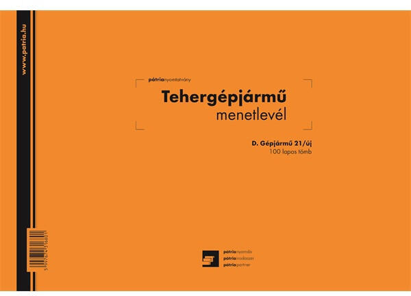 D. GEPJ. 21/UJ A4 100lapos fekvő "Tehergépjármű menetlevél" nyomtatvány Tehergépjármű menetlevél, 100 lapos tömb - A/4 fekvő, D. GEPJ. 21/UJ