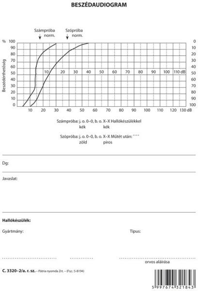 Fülészeti vizsgálati eredmény szabadlap A/5 Fülészeti vizsgálati eredmény szabadlap A/5 C. 3320-2/A