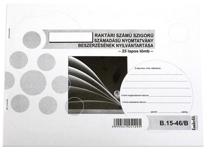 Szigorú számadású nyomtatványok beszerzésének nyilvántartása. Viszonteladók részére. A/4 méretű, fekvő, 25 lapos. Minőségi belív, karton fedlap. Kiszerelés: 40 db/ csomag.