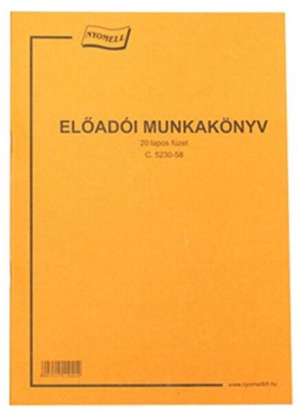 Előadói munkakönyv. A/4 méretű, álló, 20 lapos. Minőségi belív, karton fedlap. Kiszerelés: 50 db/csomag.