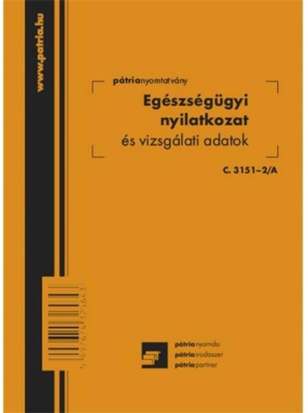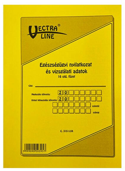 Nyomtatvány egészségügyi nyilatkozat és vizsgálati adatok VECTRA-LINE Egészségügyi nyilatkozat és vizsgálati adatok. B/5 méretű, álló, 16 lapos. Minőségi belívvel, karton fedlappal rendelkező nyomtatvány. Tartós tűzött kötéssel és perforációval rendelkezik. Kiszerelés: 200 db/csomag. Gyűjtő: 25 db.