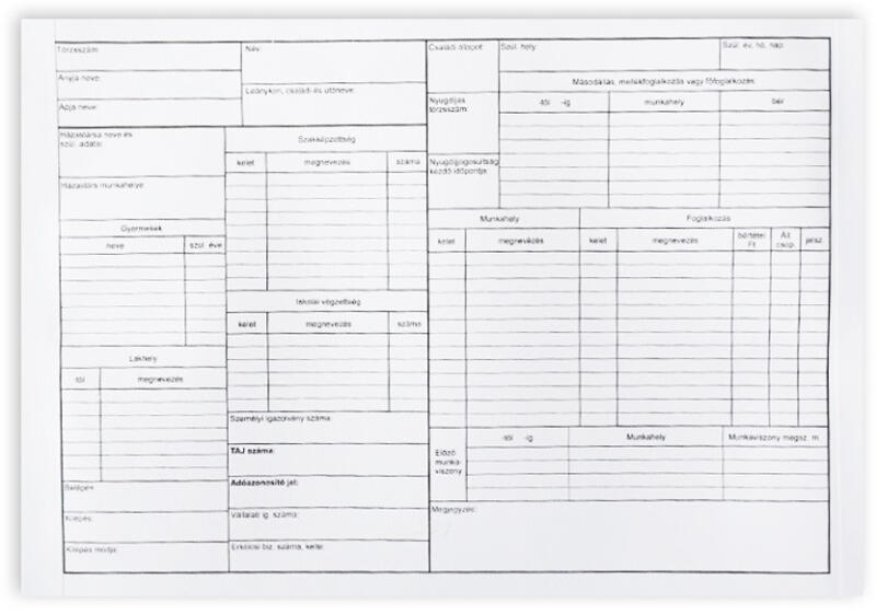 Felhasználási terület: Elsősorban az állam-, és közigazgatásban használt, ez egyedi ügyek nyilvántartására szolgáló nyomtatvány. Szabadlap, A/4, álló, négyoldalas, 80 gr-os ofszet papír, fehér alapon fekete nyomatvány. Katalóguskód: 2325