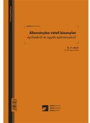a készlet vagy eszköz beszerzésekor a nyilvántartásba vétel igazolására használt nyomtatvány 25 x 4 lapos tűzött tömb méret: A/4 álló karton borító, perforált, önindigós belívek