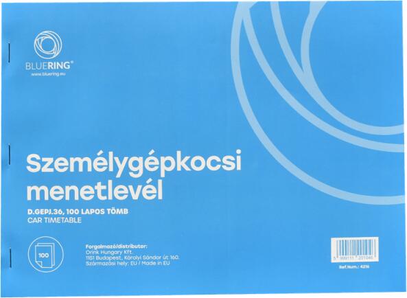 D. Gépjármű 31. Személygépjármű menetlevél | Méret: A/4 | Formátum: fekvő | Lapszám: 100