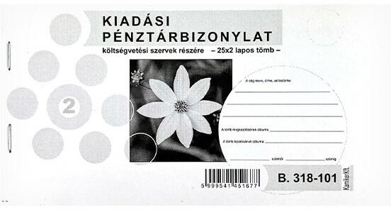 Kiadási pénztárbizonylat költségvetési szervek részére. Fekvő, 25 lapos, 2 példányos. Minőségi belívvel, karton fedlappal rendelkező nyomtatvány. Tartós tűzött kötéssel és perforációval rendelkezik.
