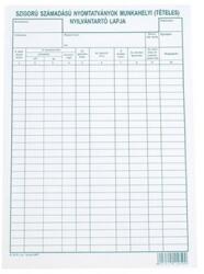 Szigorú számadású nyomtatványok munkahelyi nyilvántartó lapja. A/4 méretű, álló, 1 lap. Kiszerelés: 100 db/csomag.