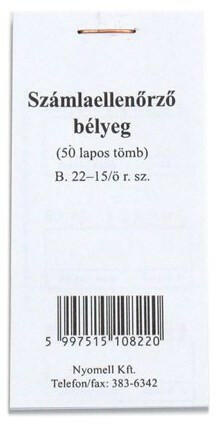 Nyomtatvány ellenőrző bélyeg Számlaellenőrző bélyeg. Mérete: 45x100 mm, álló, 50 lapos. Kiszerelés: 100 db/csomag.