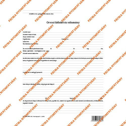 Orvosi látlelet és vélemény szabadlap A/4 négyoldalas lap A/4 négyoldalas