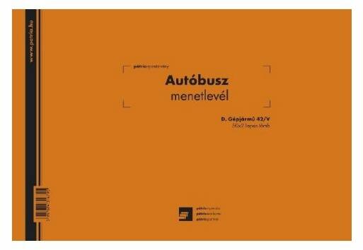 Felhasználási terület: Az autóbuszok számára kötelezõ a menetlevél használata. A szállítólevél meglétét és annak tartalmát a hatóságok ellenõrzik. 100 lapos tűzött tömb, A4, fekvõ, rövidebb oldalán tűzve, karton borítás, 80 g/m2 ofszet belívek.