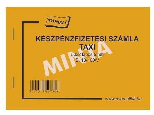 Taxis készpénzfizetési számlatömb. - A6-os méret - 50x2 lapos - Fekvő tájolás