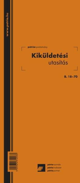 Kiküldetési utasítás (belföldi) 50 lapos tömb 140x285 mm Kiküldetési utasítás (belföldi) 50 lapos tömb 140x285 mm B. 18-70