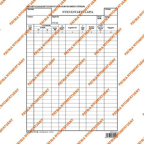Szigorú számadású nyomtatványok munkahelyi (tételes) nyilvántartó lapja A/4 álló karton A/4 álló