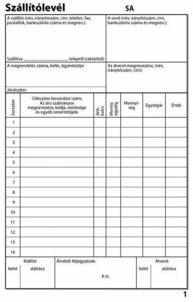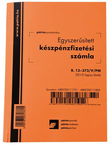 Automatikusan levéve:szept 16 2021 10:51AM- az egyik leggyakrabban használt nyomtatványtípus; szigorú számadású bizonylat sorfolytonos számozással; áru értékesítésekor, szolgáltatás igénybevételekor a teljesítés igazolására szolgál és alkalmas az áfa elszámolására 50 x 3 lapos tűzött tömb méret: A/5 álló karton borító, perforált, önindigós belívek Jogszabá