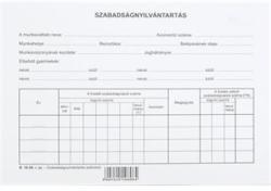 Szabadságengedély formanyomtatvány. Méret: A/6. Formátum: fekvő. Lapszám: 50. Példányszám: 2. Vegykezelt. Kiszerelés: 40 tömb/csomag.