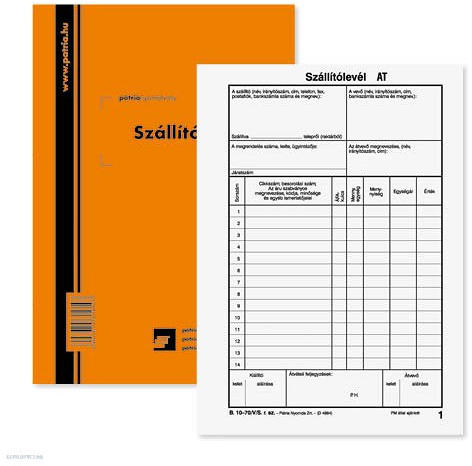 szállítmányok hivatalos, sorfolytonos számozással ellátott hivatalos okmánya, amellyel igazolható az átvétel 25 x 6 lapos tűzött tömb méret: A/5 álló karton borító, perforált, önindigós belívek .