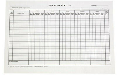 Nyomtatvány jelenléti ív 5 napos A/4 Jelenléti ív, 5 napos. A/4 méretű, fekvő.