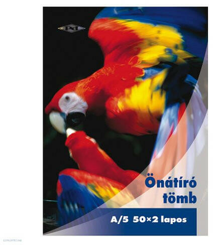 Hagyományos átírótömbök három méretformátumban, 2, illetve 3 példányosak. Önátírós: vegykezelt papírból, indigó használata nem szükséges. A5-ös méretű, franciakockás. .