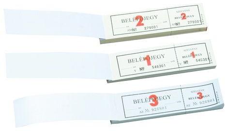 Belépõjegy. 145x40 mm méretű, fekvõ, 100 lapos. Minõségi belív, karton fedlap. Kiszerelés: 50 db/csomag.