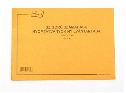 Szigorú számadású nyilvántartó füzet. A/4 méretű, fekvõ, 25 lapos. Minõségi belív, karton fedlap. Kiszerelés: 25 db/csomag.