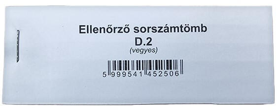Ellenőrző sorszámtömb. D2 Méret: 146x40 mm, fekvő, 100 lapos, 1 példányos, vegyes színek. Kiszerelés: 100 tömb/csomag.