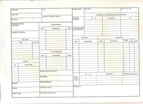 Méret:A/4, Formátum:álló, Kivitel:4 példányos, Példányszám:4 példányos, Szigorú számadású:Nincs, Lapszám:egyéb,