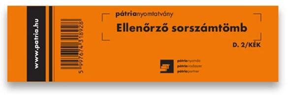Nyomtatvány ellenőrző sorszámtömb D2 100 lapos 118x40 mm 2 szelvényes vegyes 30 tömb/csomag Ellenőrző sorszámtömb. D2 Méret: 118x40 mm, fekvő, 100 lapos, 1 példányos, kék-zöld-rózsaszín színekben. Kiszerelés: 30 tömb/csomag.