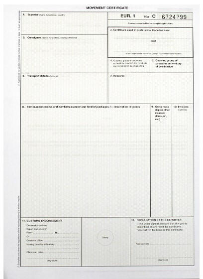 Nyomtatvány EUR1 angol új EUR1 ANGOL ÚJ. A/4 méretű, álló, 4 példányos. Kiszerelés: 400 db/csomag.