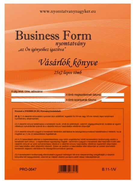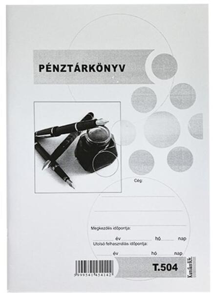 Pénztárkönyv. A/4 méretű, álló, 50 lapos. Minőségi belívvel, karton fedlappal rendelkező nyomtatvány. Tartós tűzött kötéssel és perforációval rendelkezik. Kiszerelés: 20 db/csomag.