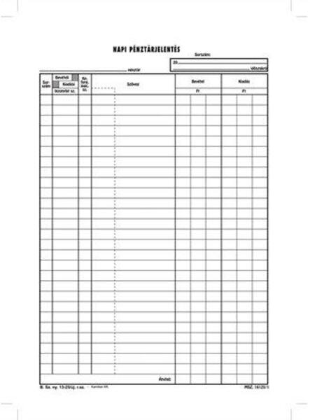 IDŐSZAKI PÉNZTÁRJELENTÉS 25X2+2LAPOS B. 13-21/VX 10DB/CSOMAG 10DB/CSOM Katalóguskód: 14500