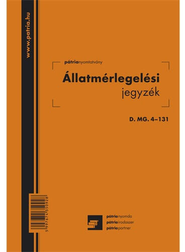 Állatmérlegelési jegy 50 lapos tömb 140x203 mm 50 lapos tömb 140x203 mm