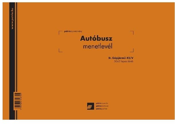AUTÓBUSZ MENETLEVÉL A4 50LAPOS D. GEPJ. 42