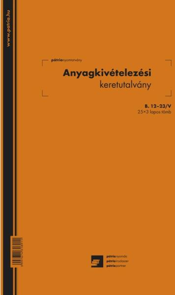 Anyagkivételezési keretutalvány 25x3 lapos tömb A/4 álló B. 12-23/V Anyagkivételezési keretutalvány 25x3 lapos tömb A/4 álló B. 12-23/V