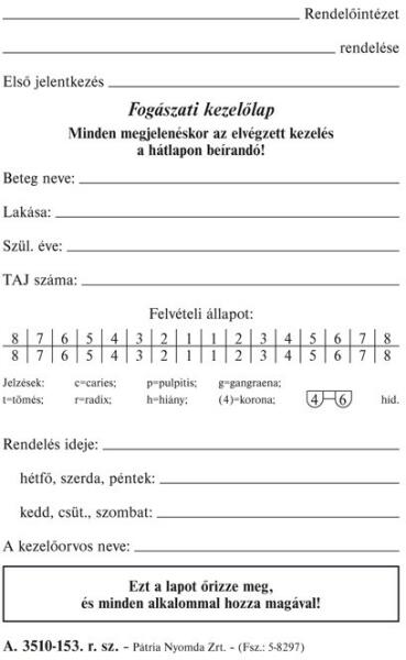 Fogászati kezelőlap 85x135 mm Fogászati kezelőlap 85x135 mm A. 3510-153