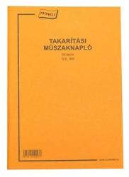 Takarítási műszaknapló. A/4 méretű, álló, 50 lapos. Minõségi belív, karton fedlap. Kiszerelés: 10 db/csomag.