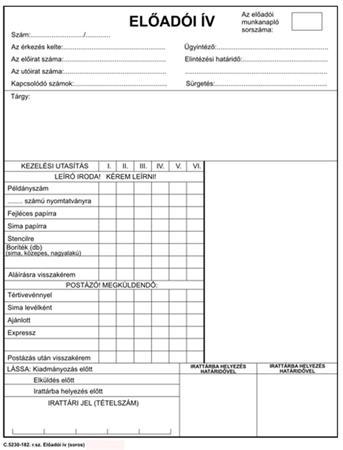 Az előadói munkanapló az egy ügyintéző által intézett iratok nyilvántartására szolgál. - A4 méret