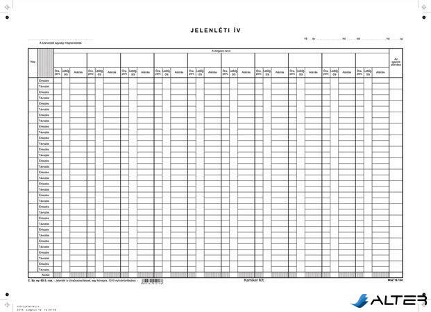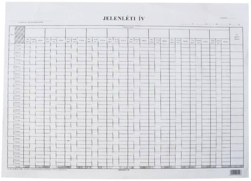 JELENLÉTI ÍV A/3 NAGY 1 HÓNAPOS 2 OLDALAS C. 60-3 Katalóguskód: 37488GPSR: Orink Hungary Kft. ; H-1151 Budapest, Károlyi Sándor út 160. ; info@orinkhungary. hu; https://orink. hu/