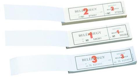 Belépőjegy. 145x40 mm méretű, fekvő, 100 lapos. Minőségi belív, karton fedlap. Kiszerelés: 50 db/csomag.