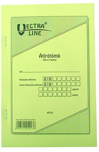 Önátírótömb VECTRALINE A/4 50x3 példány Önátírós, 50 lapos, hárompéldányos, vegykezelt papírból készült Fortuna önátíró tömb. Indigó használata nem szükséges. Első példány franciakockás, a másolatok sima lapon jelennek meg.