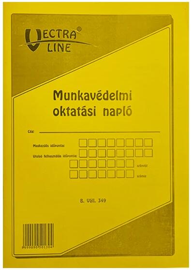 Munkavédelmi oktatási napló. A/4 méretű, álló. Minőségi belívvel, karton fedlappal rendelkező nyomtatvány. Tartós tűzött kötéssel és perforációval rendelkezik.
