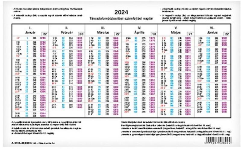 TB naptár. 2024. évi Számfejtési naptár. Karton, fekvő, 310x190 mm (A4) méretű, egy lapos. Kiszerelés: 200 db/csomag.