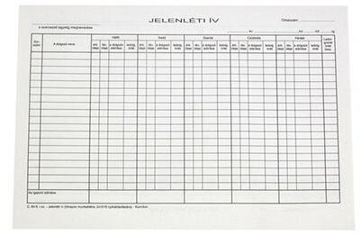 Jelenléti ív, 5 napos. A/4 méretű, fekvő.