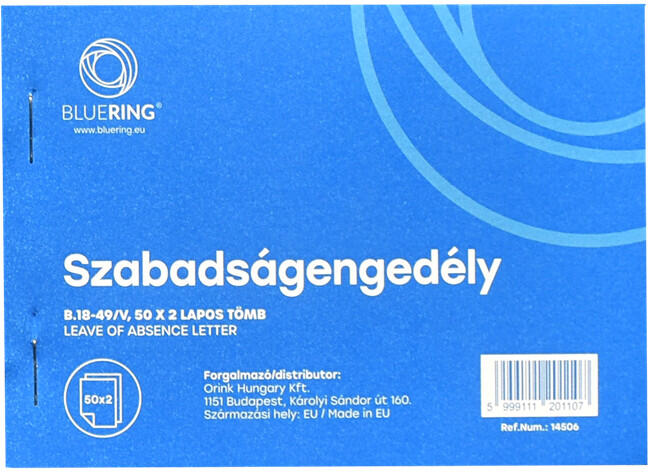 SZABADSÁGENGEDÉLY A6 50X2 LAPOS B. 18-49/VX 40tömb/csomag Katalóguskód: 14506 GPSR: Orink Hungary Kft. ; H-1151 Budapest, Károlyi Sándor út 160. ; info@orinkhungary. hu; https://orink. hu/