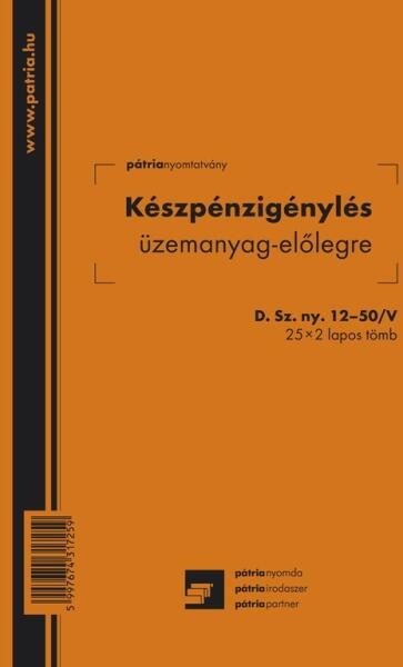 Készpénzigénylés üzemanyag előlegre 25x2 lapos tömb A/5 álló D. SZNY. 12-50/V Készpénzigénylés üzemanyag előlegre 25x2 lapos tömb A/5 álló D. SZNY. 12-50/V