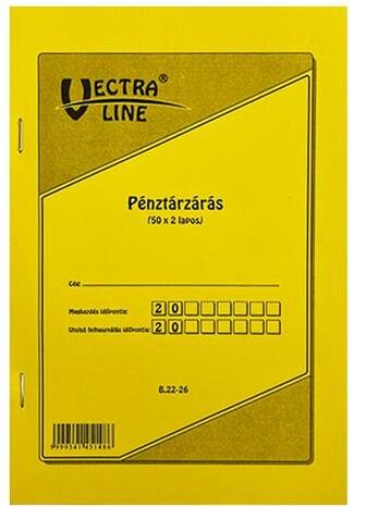 Pénztárzárás. A/5 méretű, álló, 50 lapos, 2 példányos. Minőségi belívvel, karton fedlappal rendelkező nyomtatvány. Tartós tűzött kötéssel és perforációval rendelkezik.