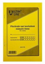 Pénztárgép napi bevételének módosító tételei. A/5 méretű, álló, 25 lapos, 2 példányos. Minőségi belívvel, karton fedlappal rendelkező nyomtatvány. Tartós tűzött kötéssel és perforációval rendelkezik. Kiszerelés: 40 db/csomag.