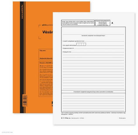 Átadás-, átvételi elismervény. A/5 méretű, álló, 25 lapos, 3 példányos. Minőségi belívvel, karton fedlappal rendelkező nyomtatvány. Tartós tűzött kötéssel és perforációval rendelkezik. Kiszerelés: 40 db/csomag.