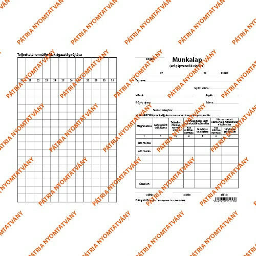 Munkalap erőgépvezetők részére szabadlap A/5 álló lap A/5 álló