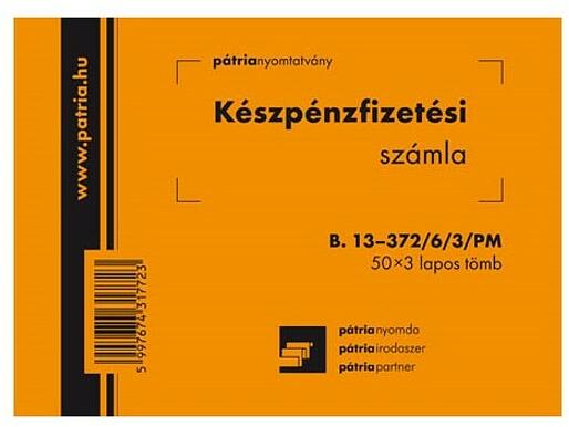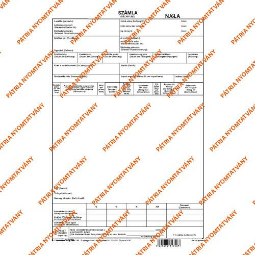 Az egyik leggyakrabban használt nyomtatványtípus; szigorú számadású bizonylat sorfolytonos számozással; áru értékesítésekor, szolgáltatás igénybevételekor a teljesítés igazolására szolgál és alkalmas az áfa elszámolására. 50 x 3 lapos tűzött tömb. Méret: A/6, fekvő. Karton borító, perforált, önindigós belívek. Jogszabályi előírások miatt, adóazonosítás