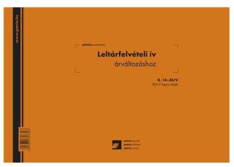 B. 14-34 "Leltárfelvételi ív árváltozáshoz" nyomtatvány Típus NyomtatványokSzavatosság: a jogszabályi előírások szerint.