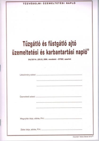 Az 54/2014. (XII. 5. ) BM rendelet az Országos Tűzvédelmi Szabályzat (OTSZ) rendelkezik a tűzgátló és füstgátló nyílászárók üzemeltetésének szabályairól. A jogszabályok értelmében ún. üzemeltetési és karbantartási napló vezetése szükséges. A karbantartási napló a jogszabályok alapján készült el. A tűzgátló és füstgátó ajtók, ablakok, nyílászárók ü